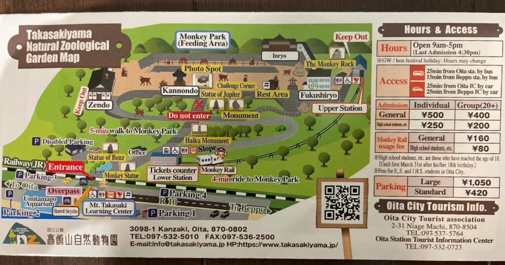 Takasakiyama Monkey Park is one of Oita’s most kid-friendly outdoor spots — quick to visit, stroller-aware at the entrance, and unforgettable for children. You can reach the monkey area by monorail, making the trip easy even with toddlers.